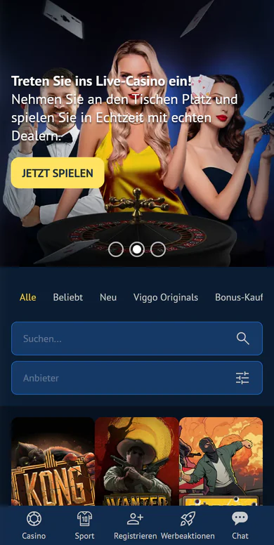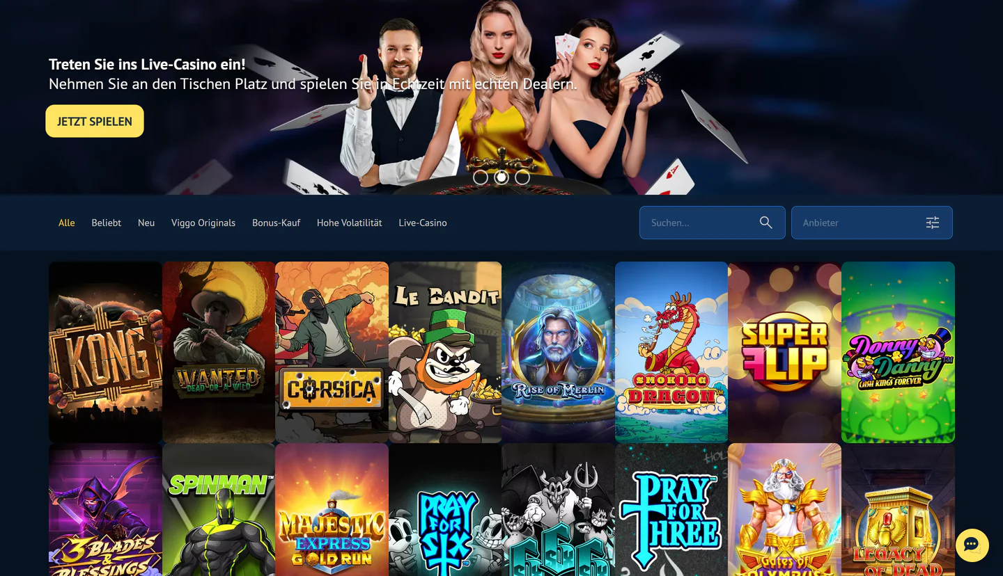 Das Live-Casino von Viggoslots umfasst über 136 Tische und wird von branchenführenden Anbietern wie Evolution Gaming und Pragmatic Play Live betrieben. Neben klassischen Tischspielen wie Blackjack, Roulette, Poker und Baccarat gibt es spannende Varianten wie Baccarat Squeeze oder Double Ball Roulette sowie populäre Spielshows. Für High Roller stehen VIP-Tische und exklusive Salon-Privé-Optionen zur Verfügung.